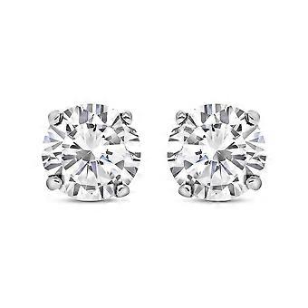 Jewelco London Ladies Sterling Silver Cubic Zirconia 4 Claw Solitaire Stud Earrings 5mm 1.00ct