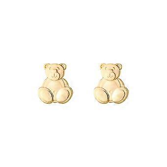 Jewelco London Ladies 9ct Yellow Gold Happy Teddy Bear Stud Earrings