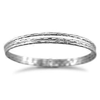 Jewelco London Rhodium Silver 3 strand D/C Slave Bangle - Ladies
