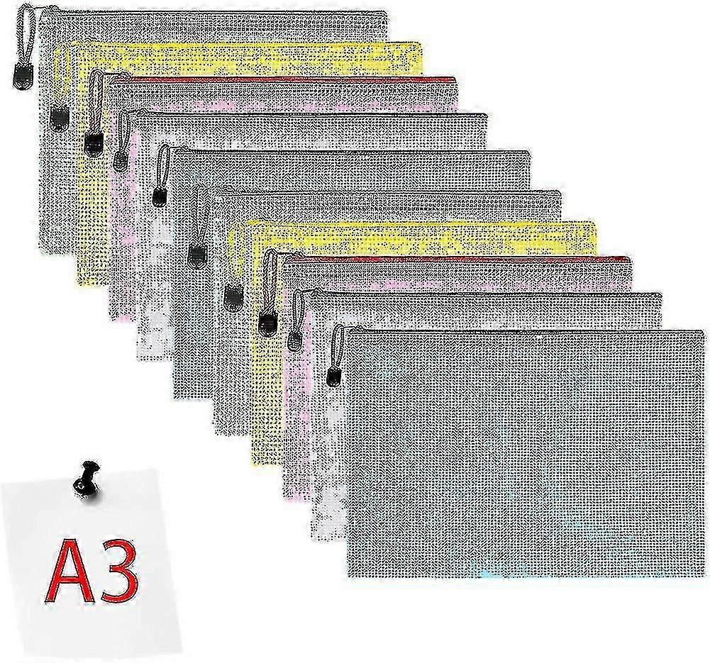 Document Pocket A3, 10 Pieces A3 File Zippered Pockets, Mesh Plastic Zippered--