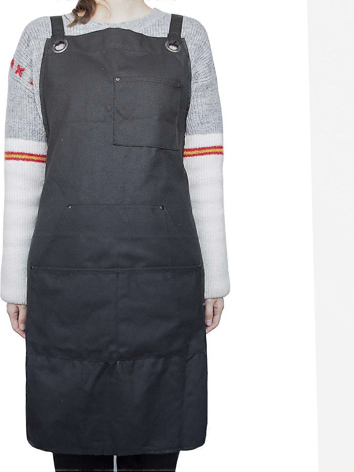 Adjustable Multiple pockets Garden Tool Bib Apron Heavy Duty Apron 600D Oxford Work Garden Bbq Apron (Black)