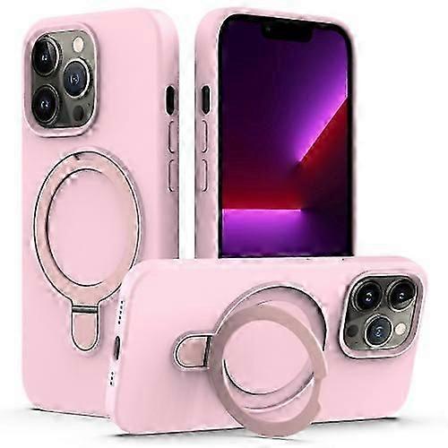 Mobile Phone Cases For iPhone 13 Pro MagSafe Magnetic Liquid Silicone Phone Case with Ring Holder(Grey Pink)