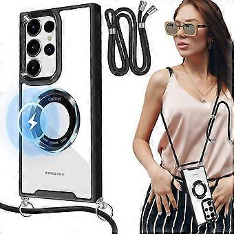 for Samsung Galaxy S24 Ultra Case Clear with Crossbody Strap, [Compatible with Mag Safe], Adjustable