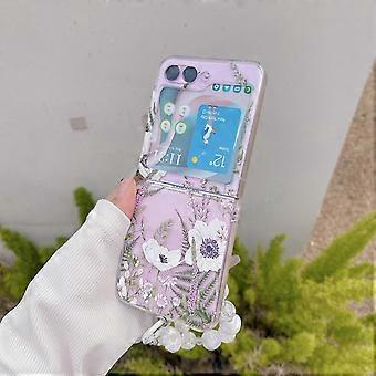 Clear Case for Samsung Galaxy Z Flip 5 with Wrist Strap, Fashion Flower Case Galaxy Z Flip 5, Hard PC Shockproof Case Galaxy Z Flip 5 5G