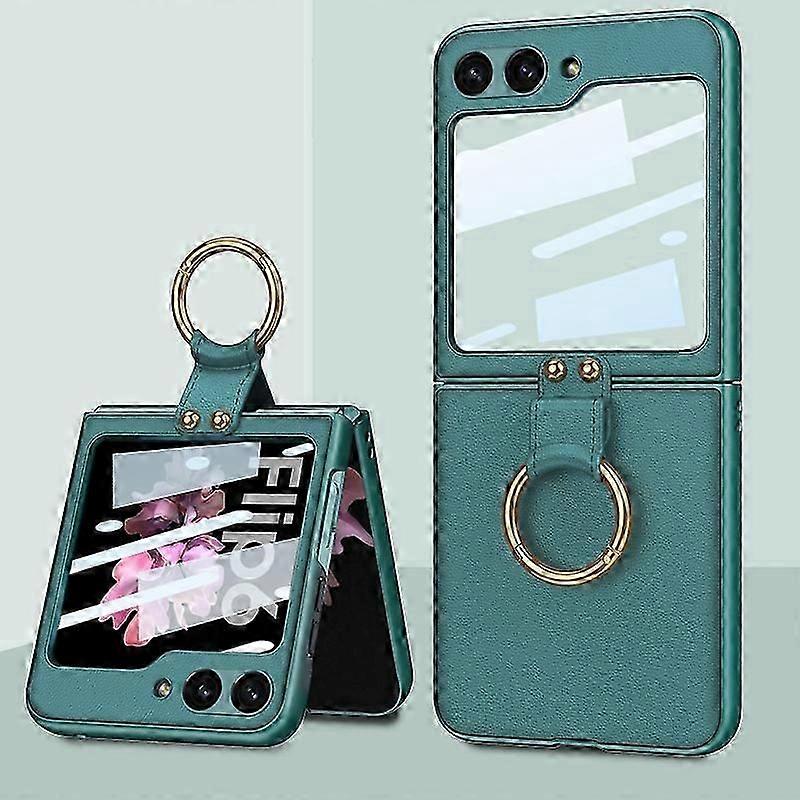 unique For Z Flip 6 Case, Slim Thin PU Leather Shockproof Protective Case for Samsung Galaxy Z Flip 6 with Ring Holder & Small Screen Protector