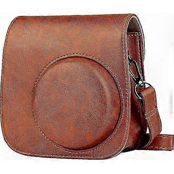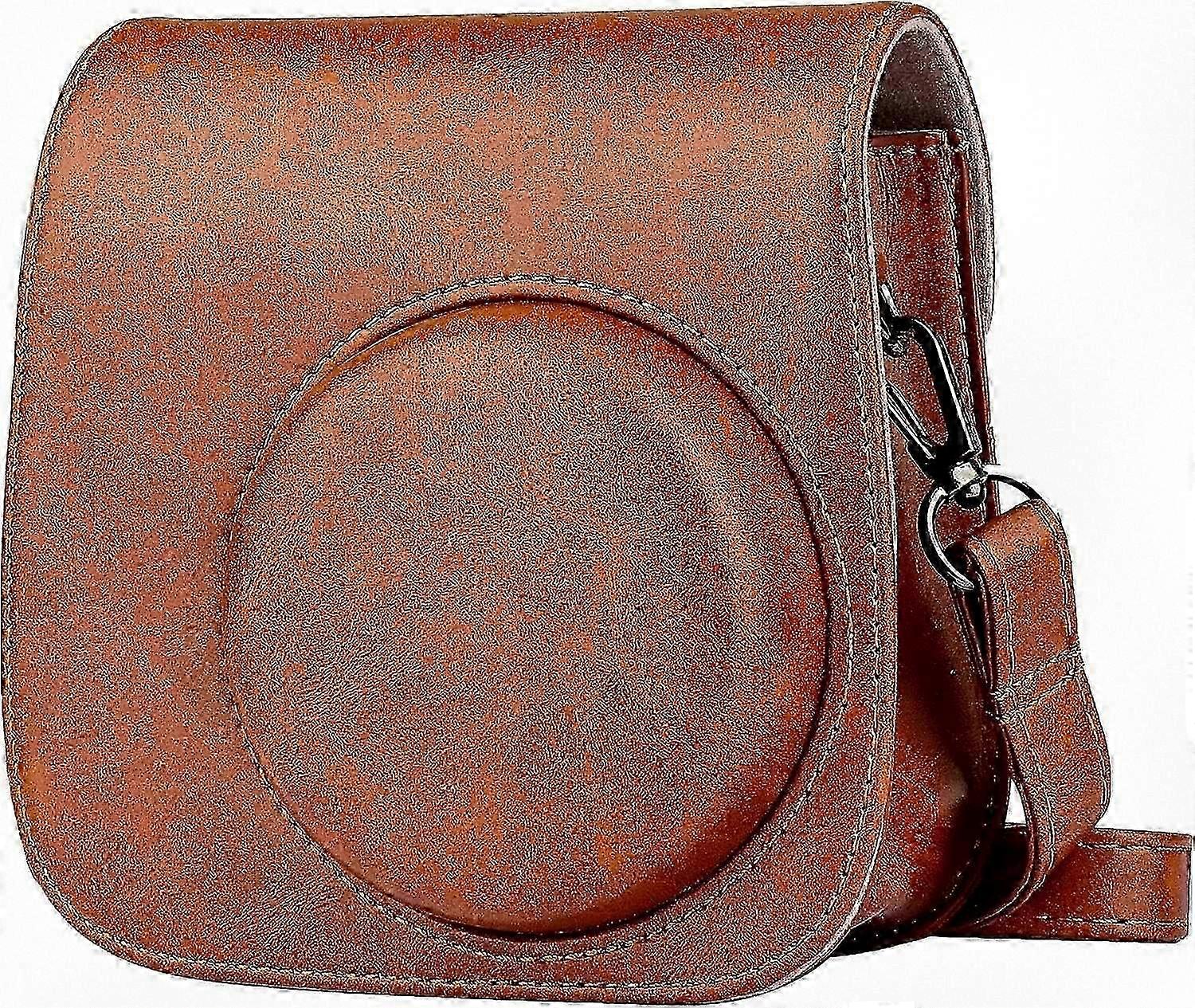Faux Leather Camera Case for Fujifilm Instax Mini 11/9/8 with Adjustable Strap & Storage Pocket (Brown) SZRH A-YH