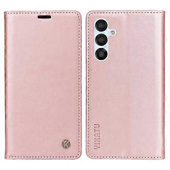 حافظة لسامسونج S23 ذهبي وردي قوي جلد مغناطيسي صلب ملمس الجلد فتحة بطاقة محفظة