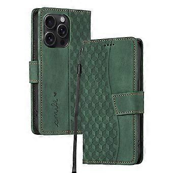 حافظة لهاتف ايفون 14 برو ماكس اخضر غامق محايد مقابل حقيبة جلد فليب متقلب نمط الماس Cc270