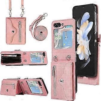 Wallet Case For Samsung Galaxy Z Flip 6 with Crossbody Shoulder Strap, Credit Card Slot Card Holder Stand Leather Case