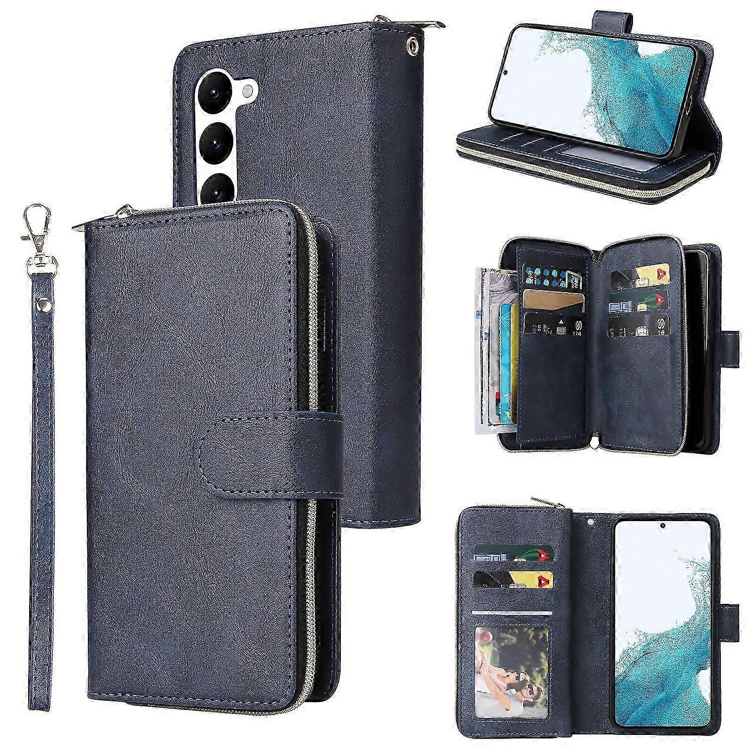 Wallet Case for Samsung Galaxy S24 Plus, Card Holder Slots Zipper Pocket Handbag Case Magnetic Closure Kickstand with Wrist Strap