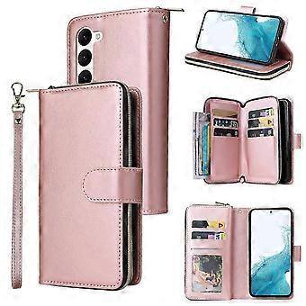Wallet Case for Samsung Galaxy S24 Ultra, Card Holder Slots Zipper Pocket Handbag Case Magnetic Closure Kickstand with Wrist Strap