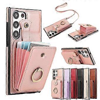 حافظة محفظة 2 في 1 متوافقة مع سلسلة Samsung Galaxy S24 ، حافظة محفظة مغناطيسية للإغلاق مع حامل حلقة دوران ، حامل فتحات بطاقة ، حبل كروس