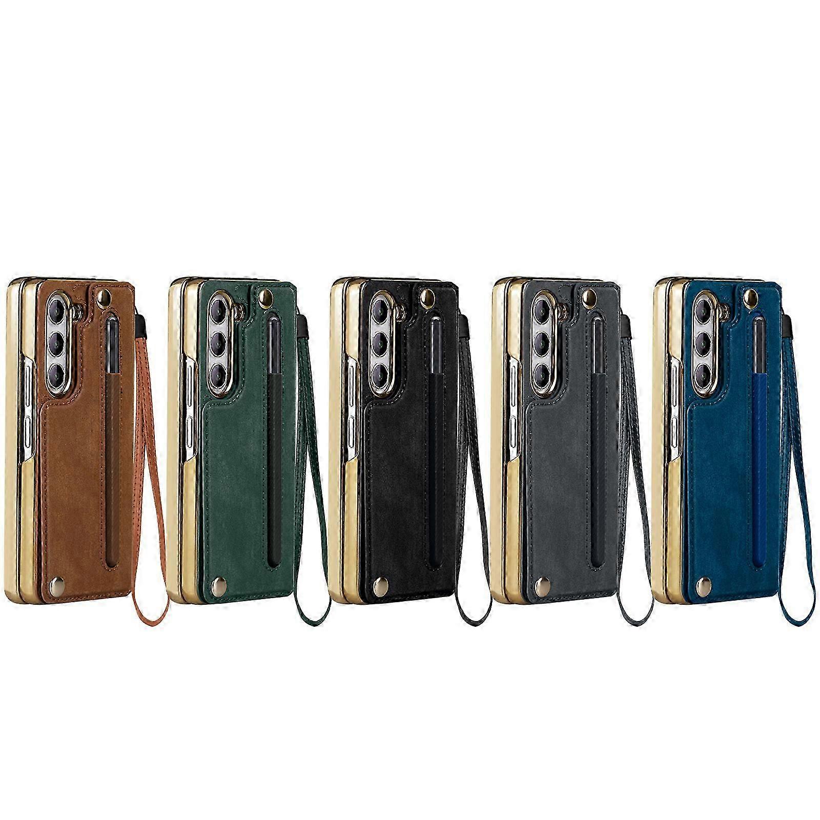Wallet Phone Case for Samsung Galaxy Z Fold 6 Case with Pen Holder, PC+Leather Stand and Lanyard and with Card Holder, Magnetic RFID Blocking Cover