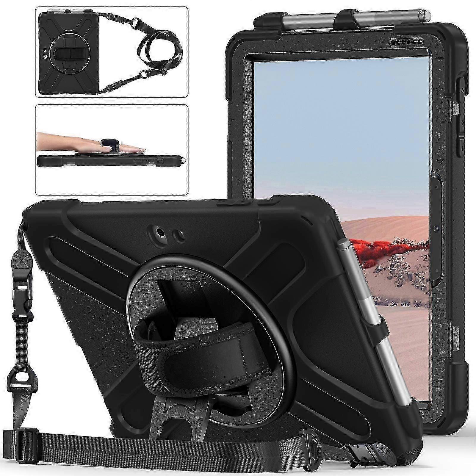 Microsoft Surface Go 4/3/2/1 Protective Case with Silicone Holder Shoulder and Hand Straps and Pen Compartment