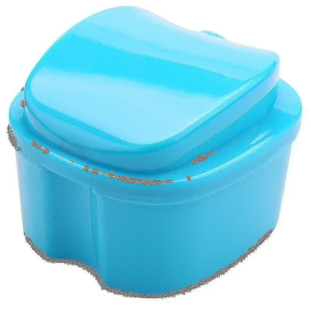 Blue Denture Case, Denture Cup With Strainer, Denture Bath Box Teeth Storage Box With Basket Net Co
