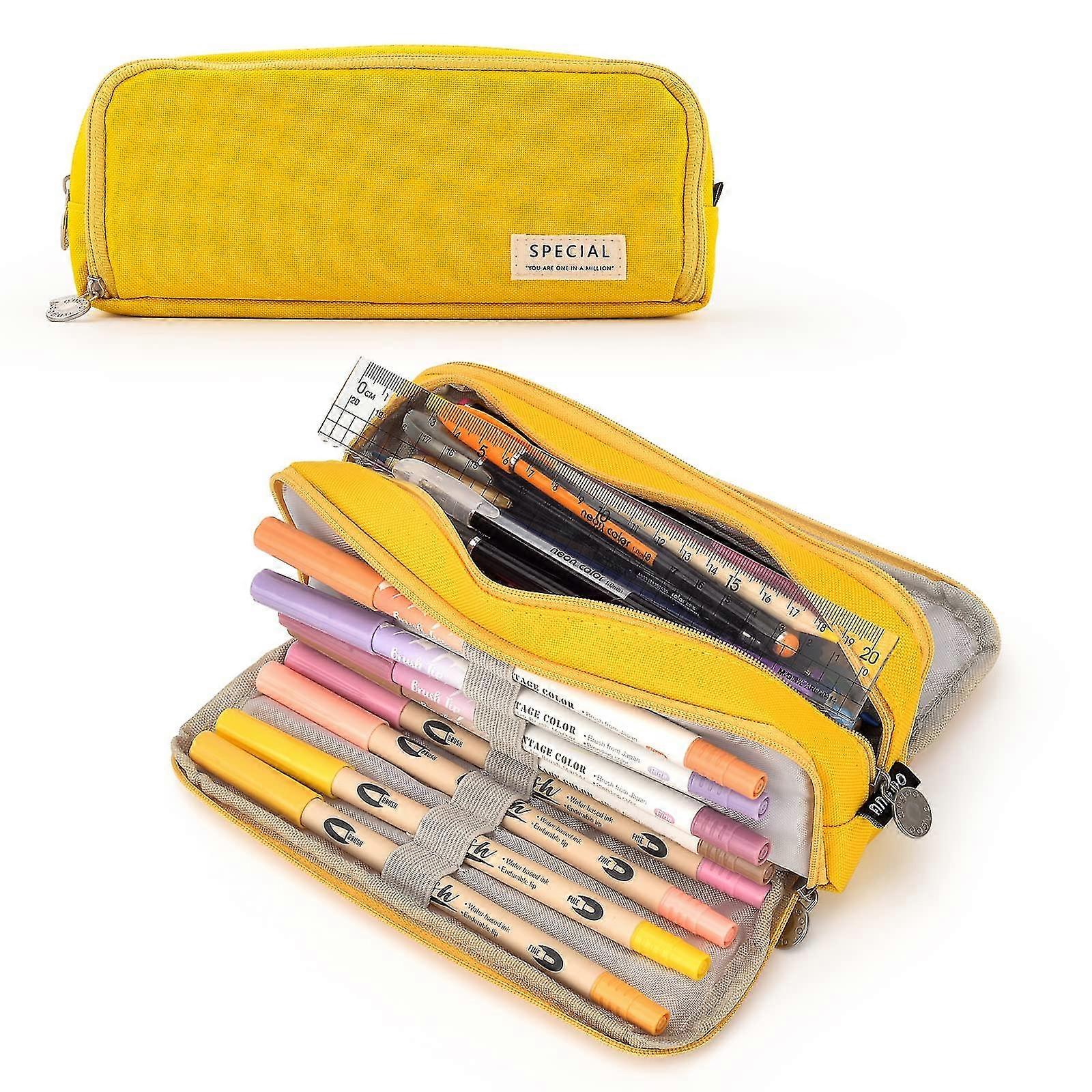 School Pencil Case For Girls & Boys, Large 3 Compartment Pencil Case, Pastel Pencil Cases For Women & Men (yellow)