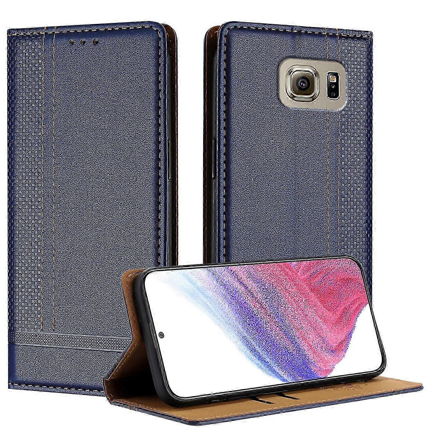 Case For Samsung Galaxy S6, Vintage Stitch Leather Wallet Case Card Slot Kickstand Magnetic Closure Shockproof Flip Folio Case Cover