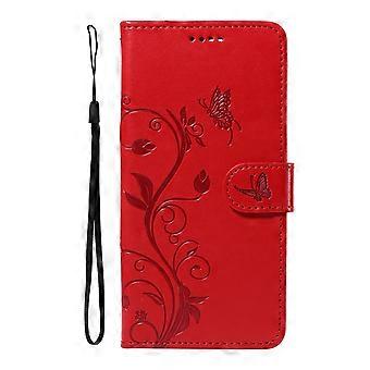 حالة لفون 14 الأحمر الأسود الحبل تنقش الجلود المشمش شجرة فليب بطاقة فتحة