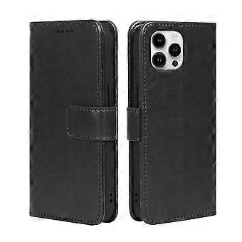 حالة لفون 14 برو جلد أسود مجنون الحصان نمط صورة إطار بطاقة فتحة مربع مشبك Eee1145