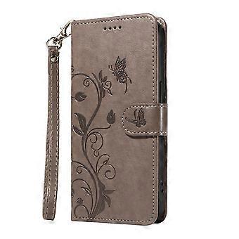 حالة لفون 14 رمادي الجلود حبل منقوش شجرة المشمش فليب بطاقة فتحة