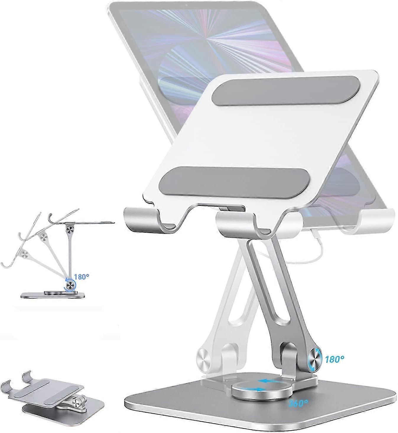 360 Rotating Tablet Holder, Adjustable Portable Foldable Aluminum Table Stand For Kitchen Kiosk Desktop