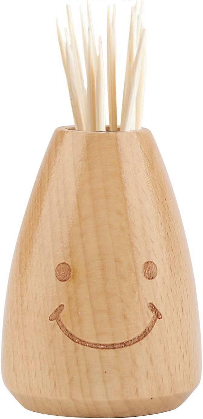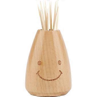 Toothpick Holder,Wooden Tooth Pick Dispenser,Cute Smiling Face Wooden Toothpick Box Holder