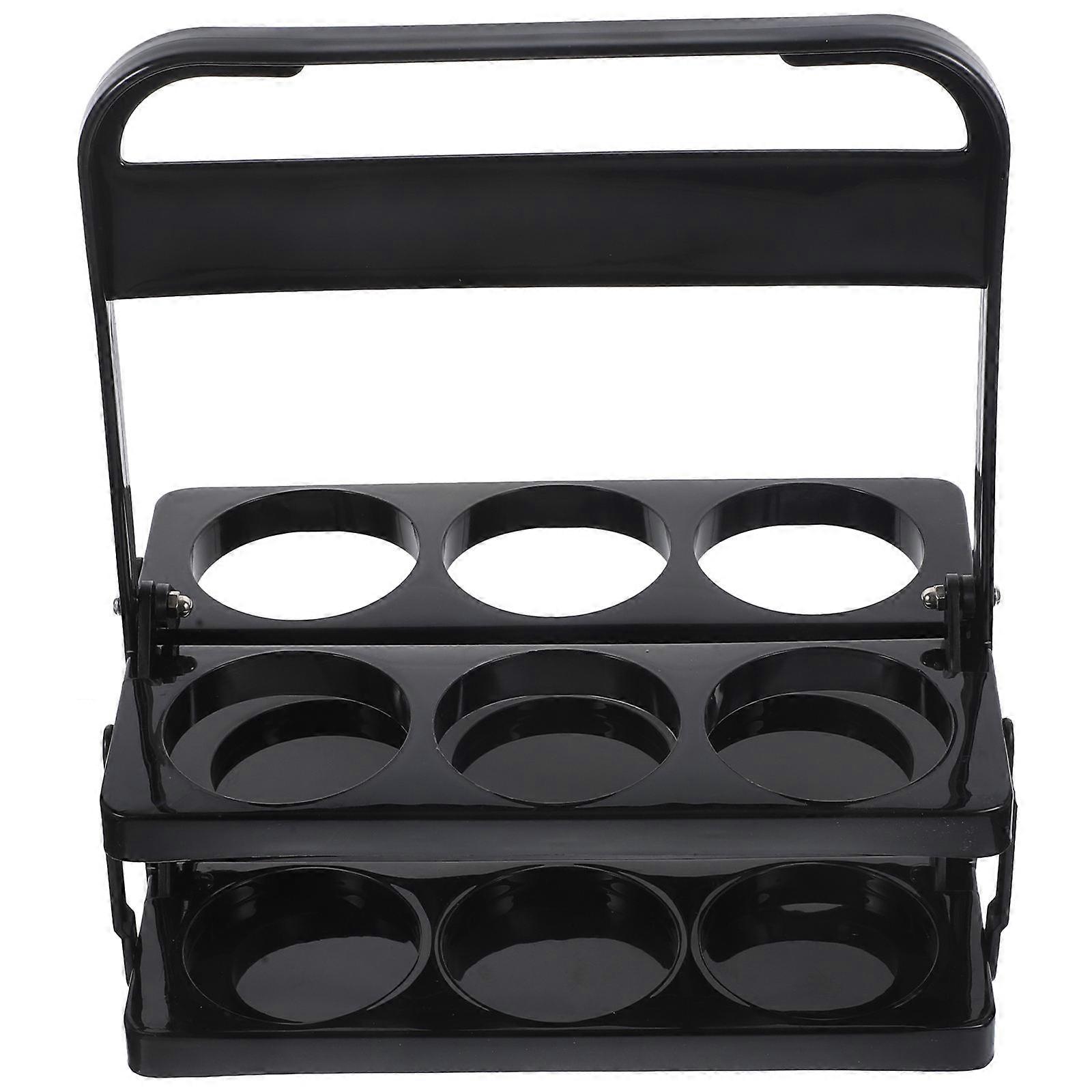 Collapsible Cup Carrier With Handle Ideal For Picnic And Camping Black 6-Slot Drink Holder 1Pcs