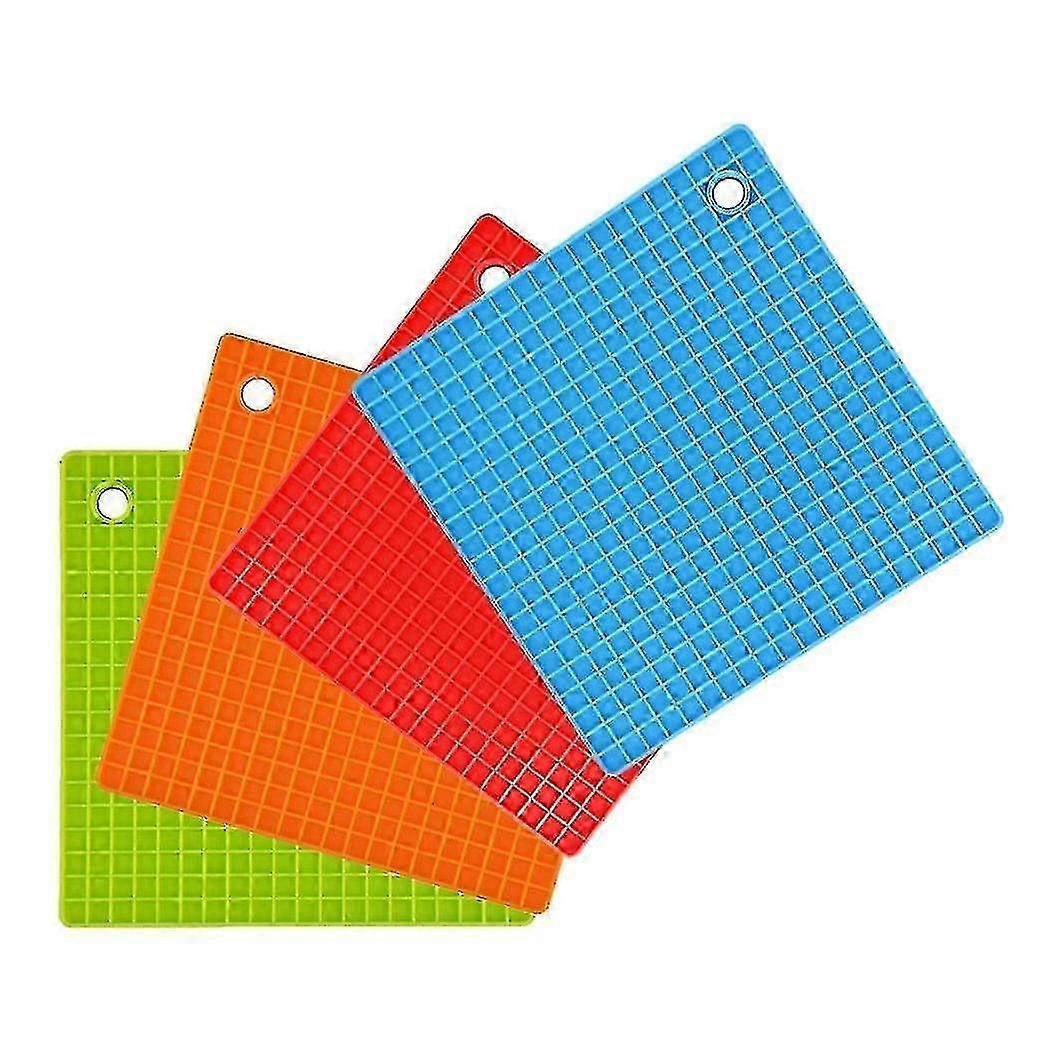 4 Pcs Silicone Pot Holder, Non-Slip Durable Dishwasher Safe Heat-Resistant Hot Plates Service Mat