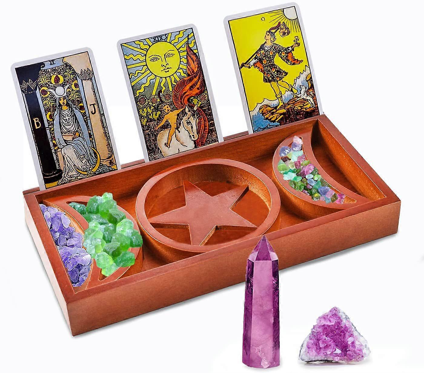 Tarot Card Holder Wooden Display Stand Divided Tarot Card Accessories