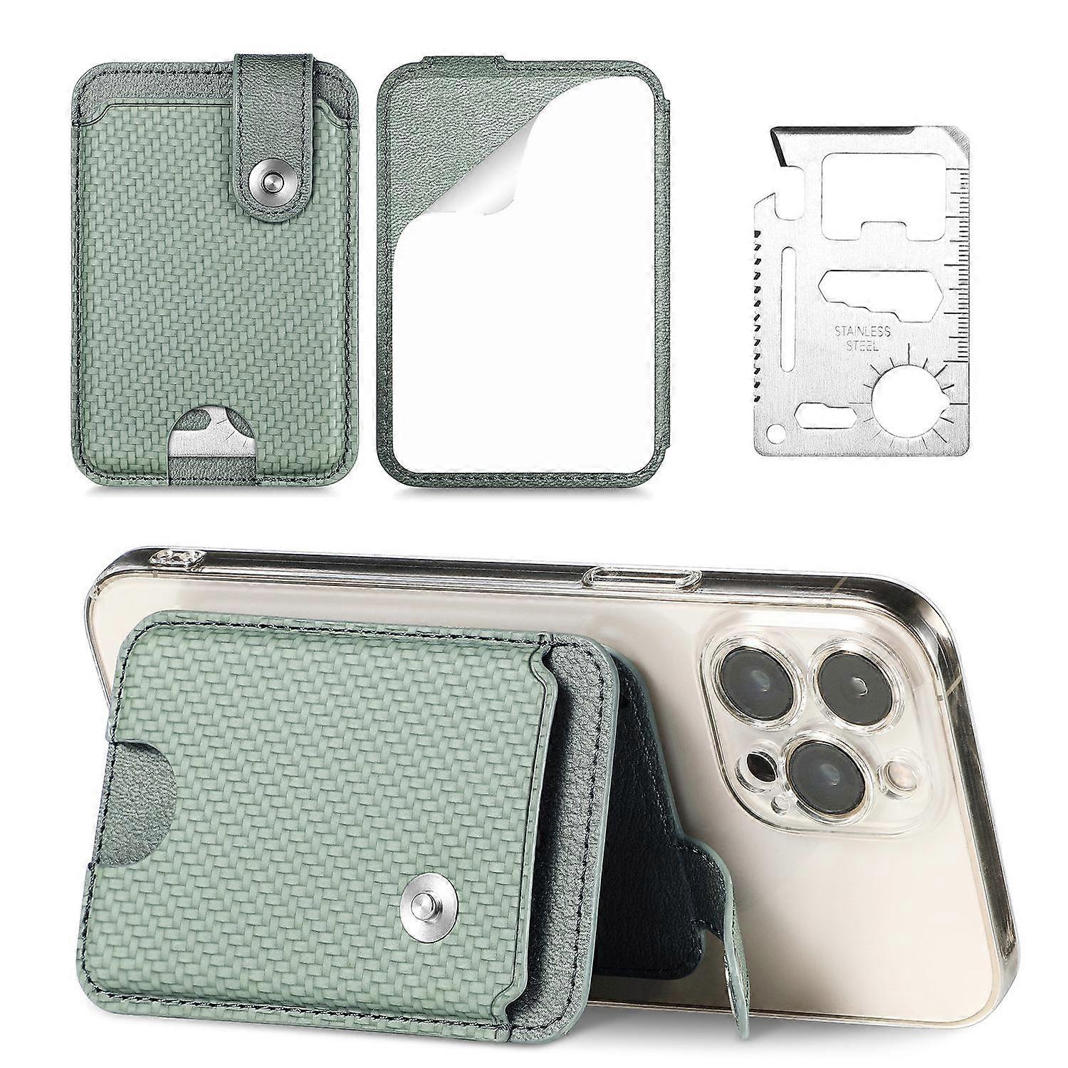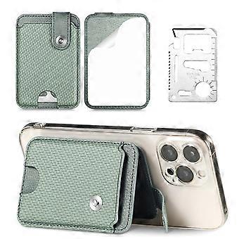 Phone Card Holder Carbon Fiber Texture Kickstand Adhesive PU Leather Card Bag-Green