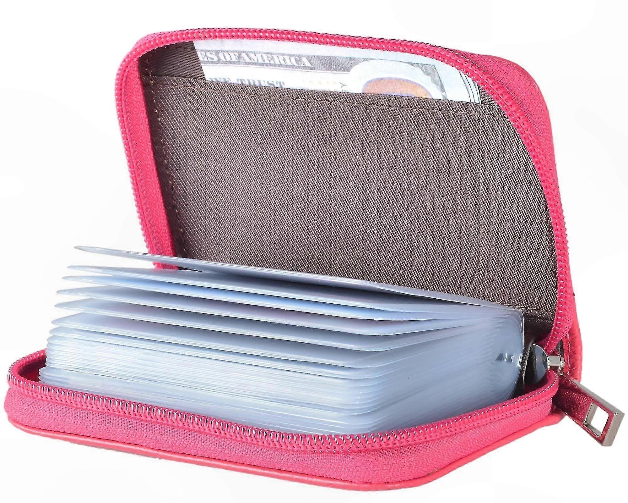 Leather Card Holder for Men & Women, ID and Business Card Case, Compact Wallet in Rose Color
