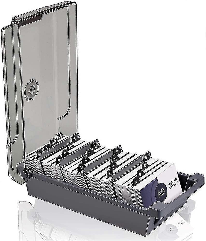 Business Card Holder, 500 Sheet Capacity Business Card Storage Box With 4 Divider Panels