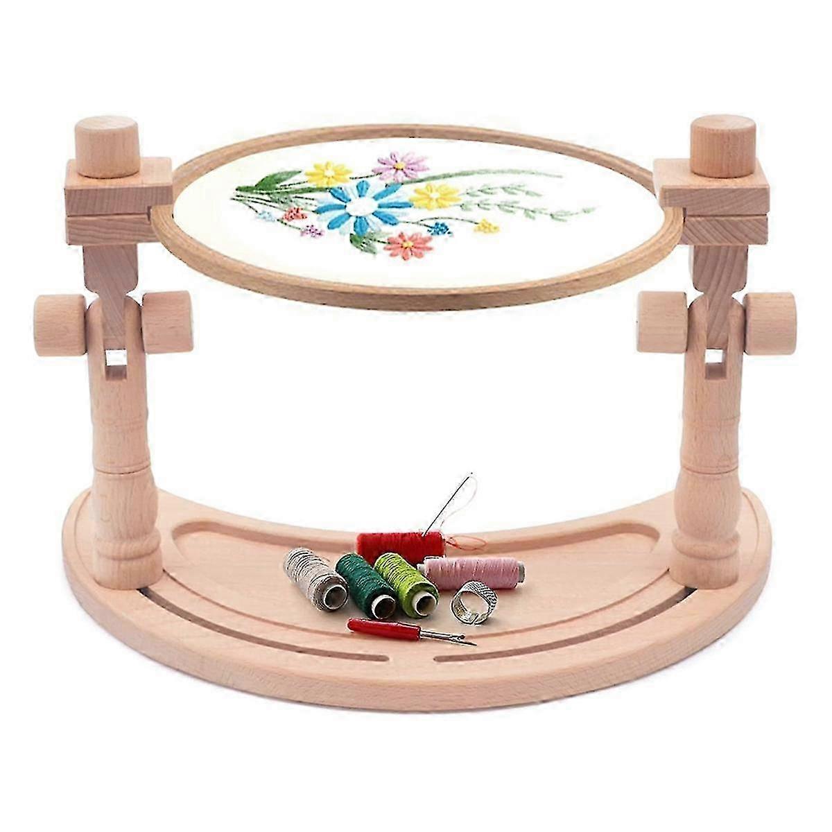 Adjustable Embroidery Stand, Rotated Stand Beech Wood Embroidery Hoop Holder for Arts Crafts Sewing