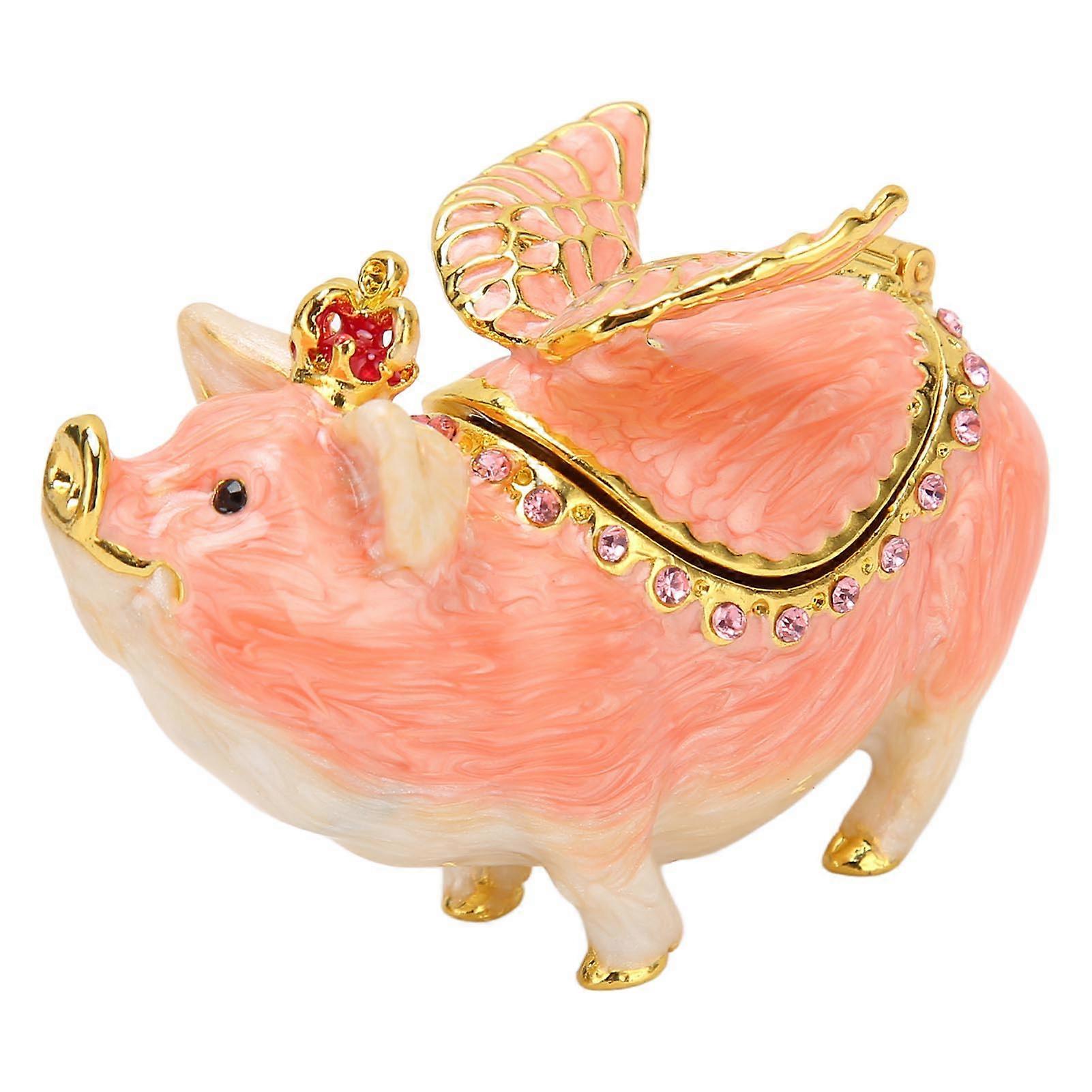 Pig Figurine Holder Hinged Collectible Decorative Metal Animal Sculpture Jewelry Box for Rings Earrings