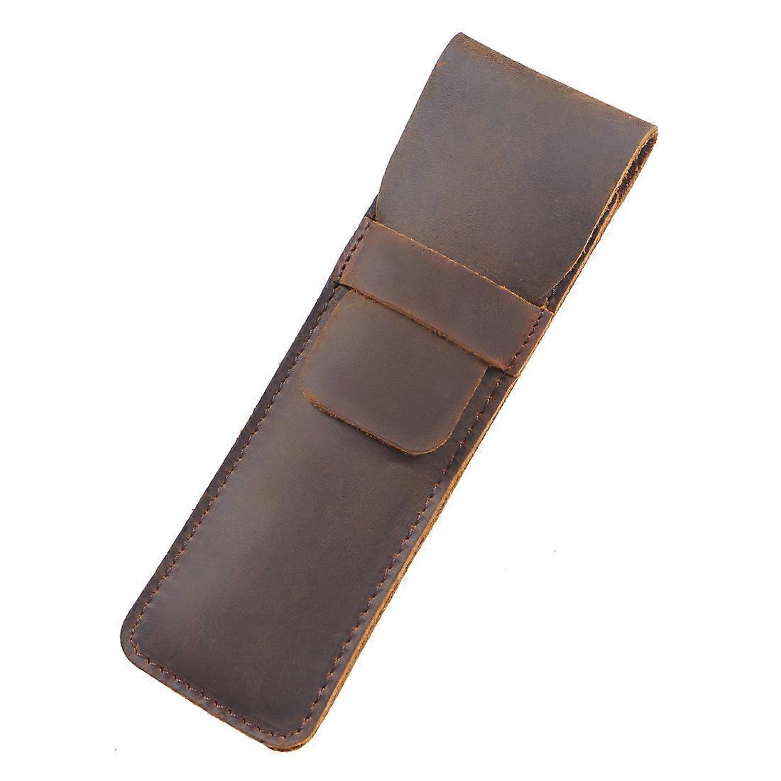 Leather Pen Case Holder Handmade Fountain Multi Pens Pouch Brown