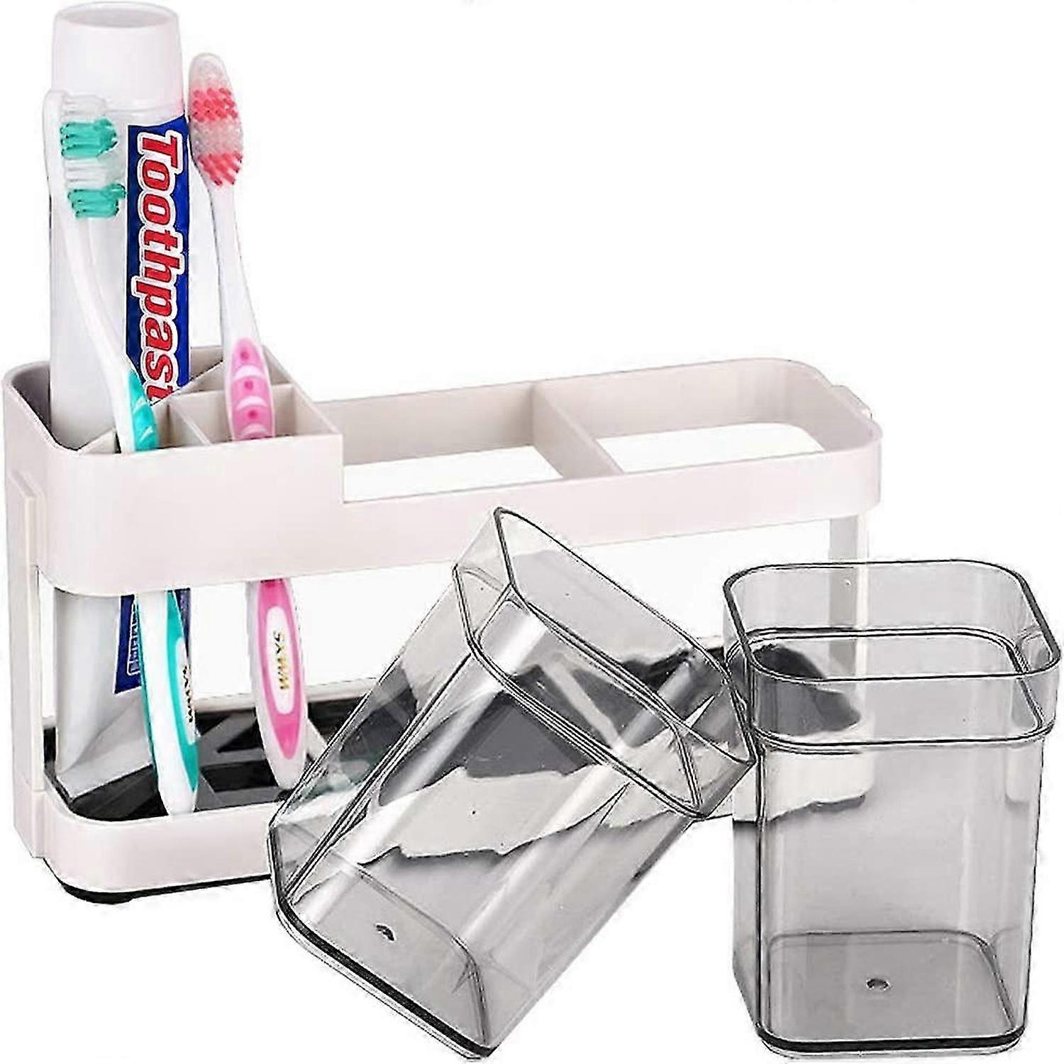 Toothbrush and Toothpaste Stand Holder with 2 Cups for Bathroom Storage Organizer ,4 Slots