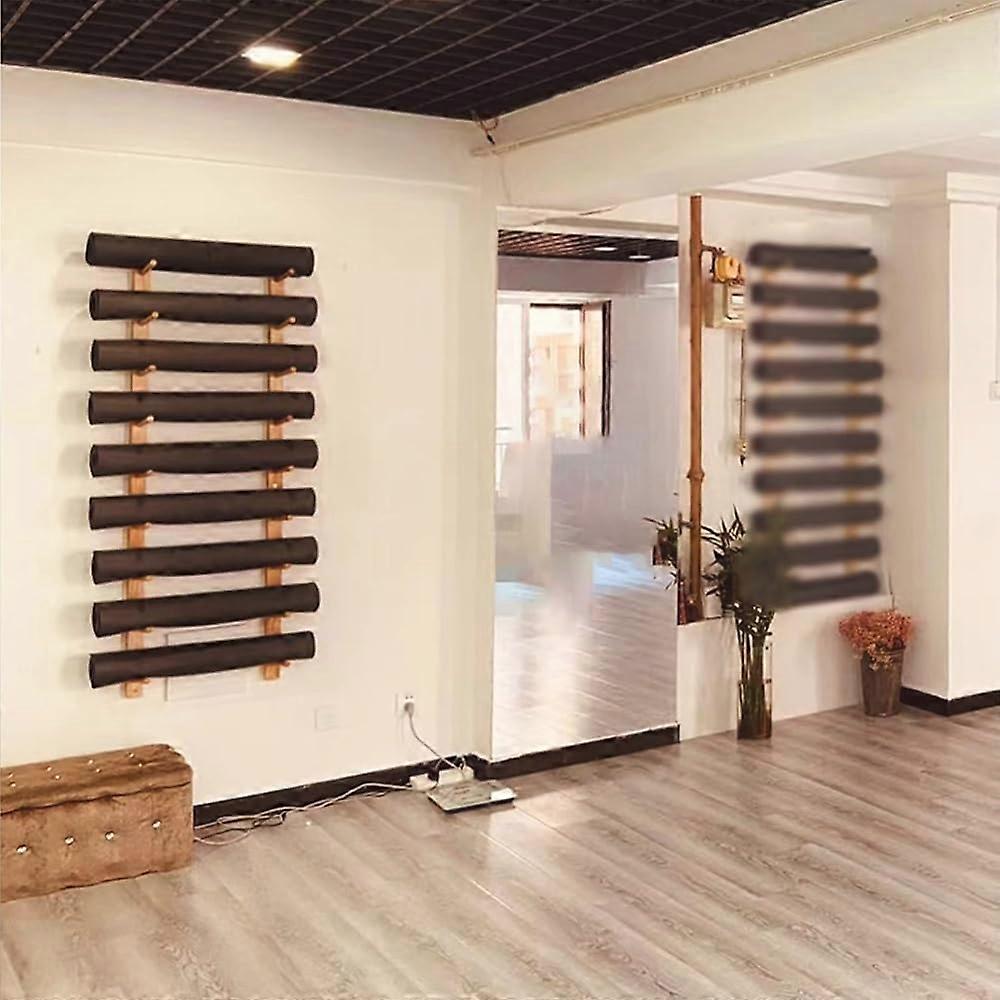 Yoga mat holder, 9layer wooden yoga mat holder for commercial gyms, wallmounted, storage rack for yoga mats at home, freestanding display shelf.