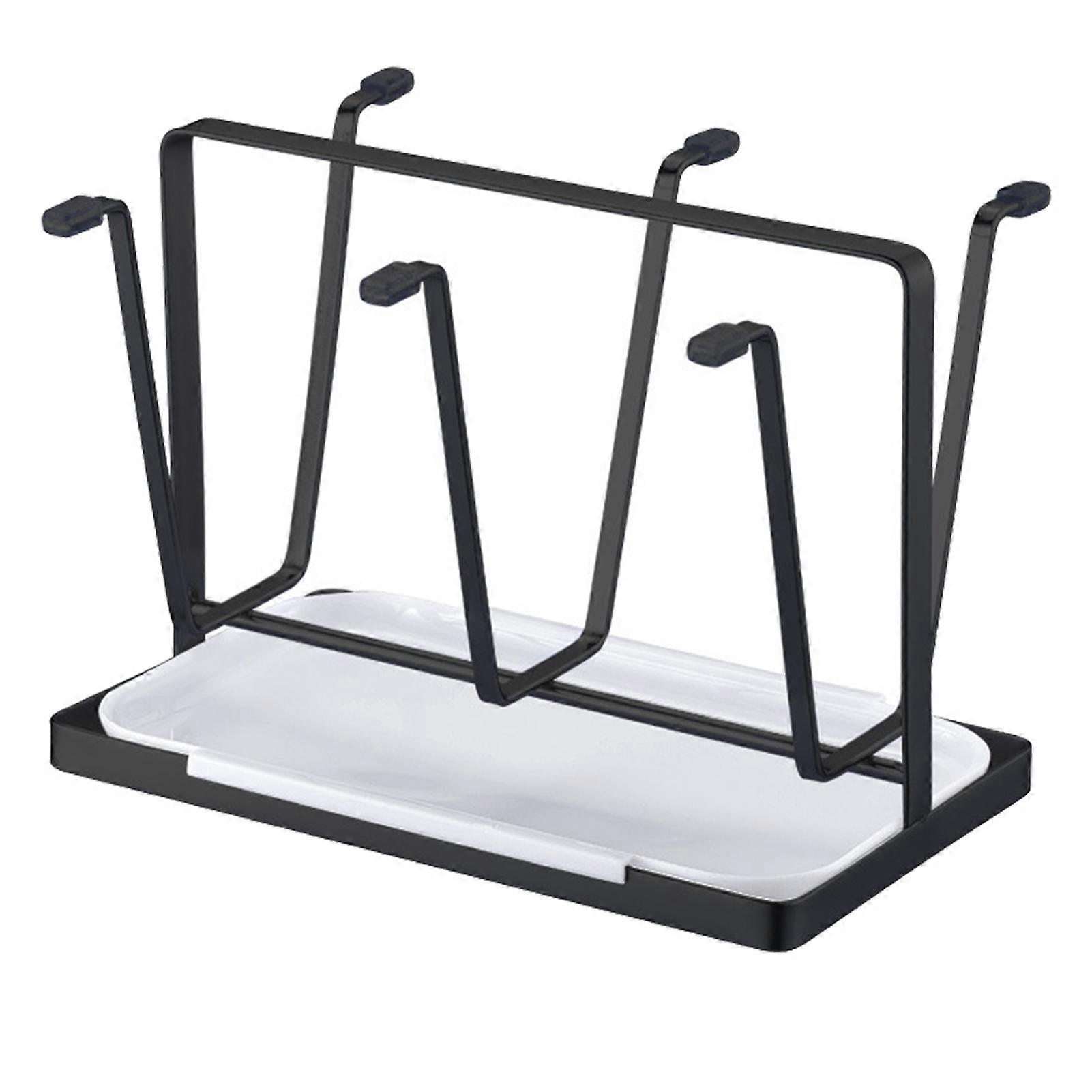 Metal Cup Drying Rack Stand with Removable Drip Tray Non-Slip Glasses Mugs Cups Organizer 6-Cup Iron Drainer Holder for Countertop Cabinet