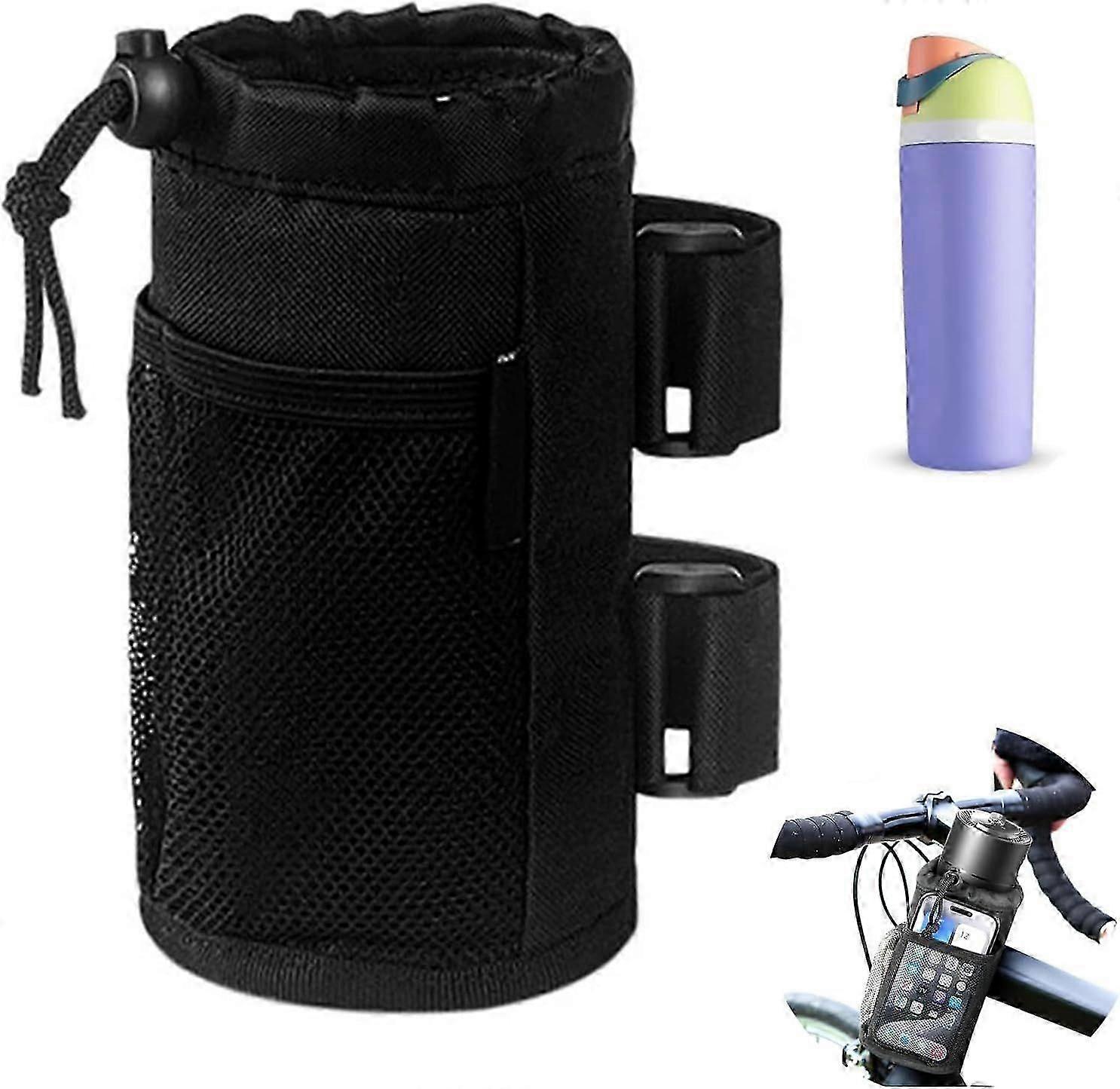 Bike Water Bottle Holder, Bike Bottle Holder with Mesh Pocket, Screwless Mountain Bike Water Bottle Holder, Bottle Holder for Bicycle Bottle, Handleb
