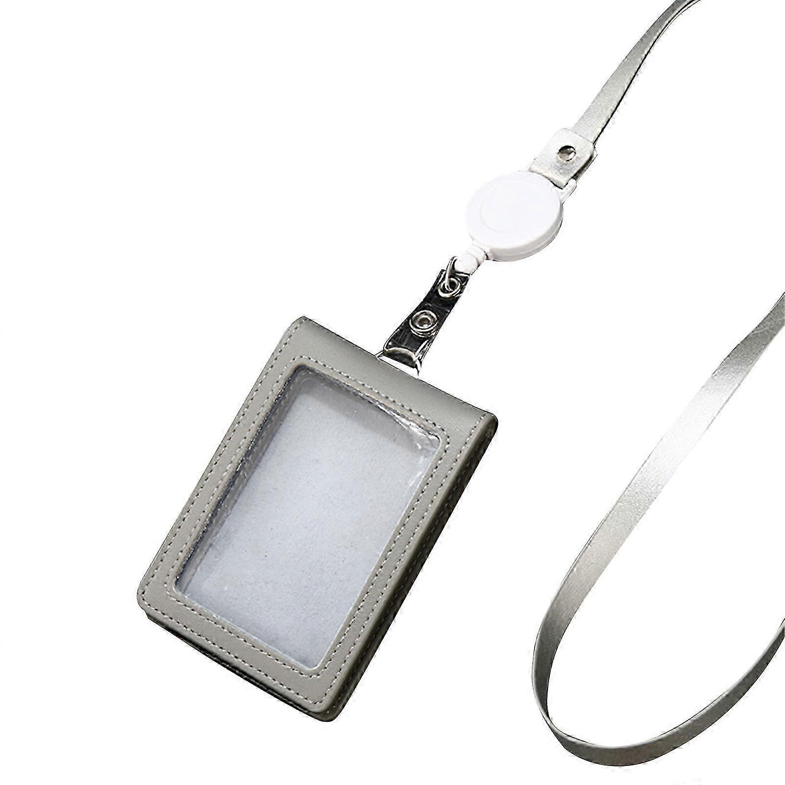 Leathers Badge Holder with Retractable Lanyar Card Case Sleeve Clear Bank Credit Card Holder Clear Window Card Protector
