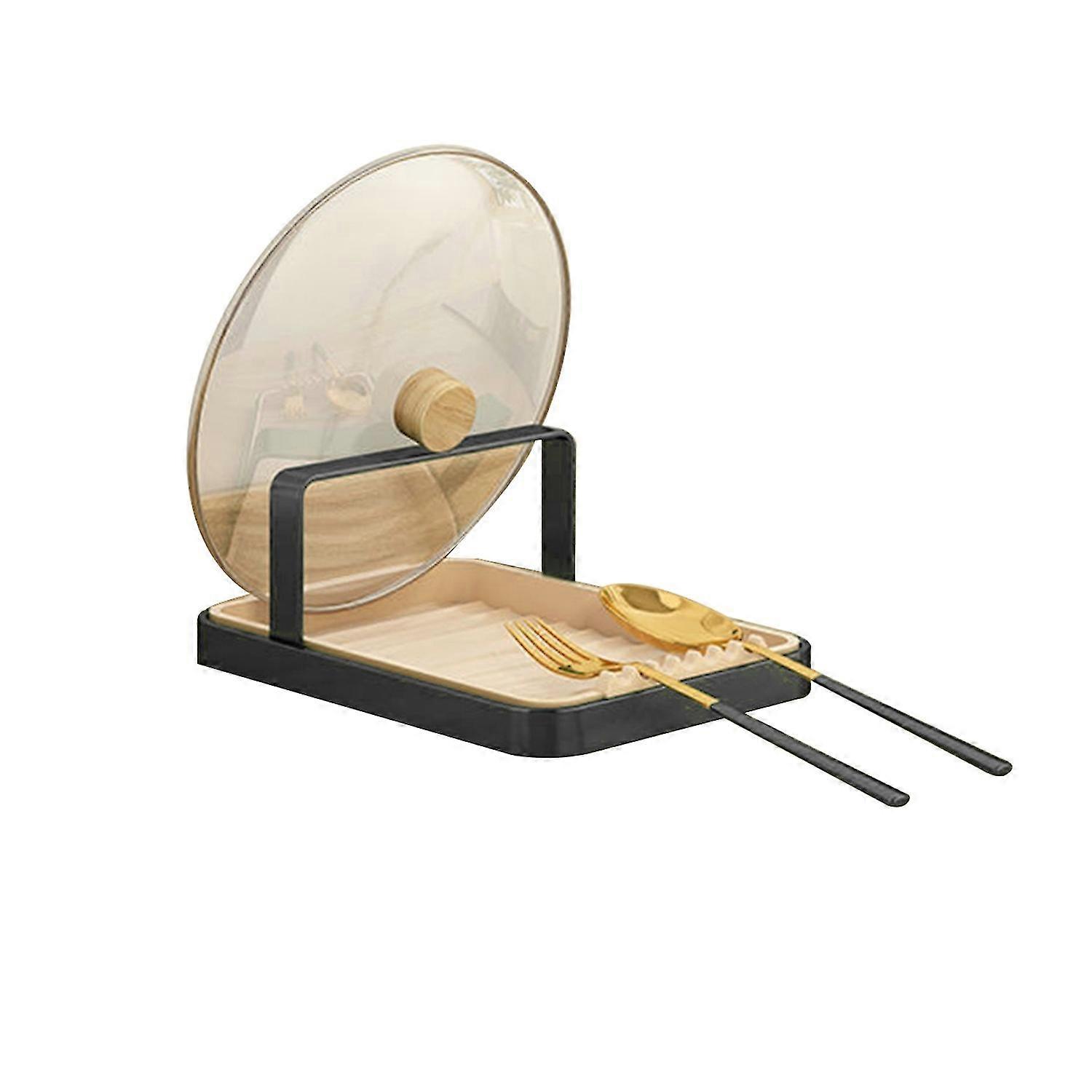 Pot Lid Holder with Water Tray Wall-mounted Punch Free Kitchen Pot Storage Rack Spatula Spoon Pan