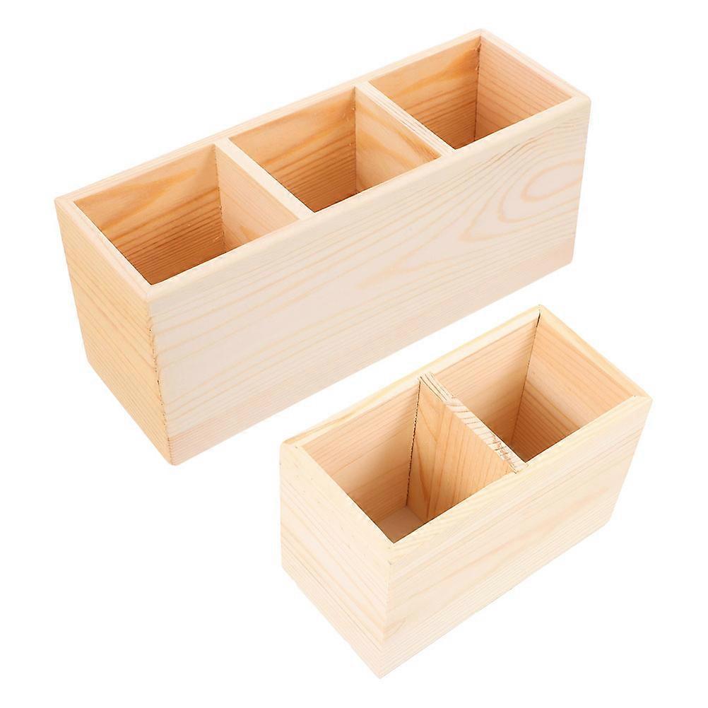 Pen Stand Wooden Pencil Holder Office Desk Accessories Divider Structure Natural Finish 24.00X10.00X8.00CM 2Pcs