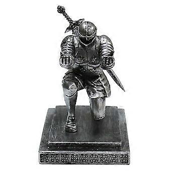 حامل قلم فارس الدروع مع ملحق السيف على وضع ركبة واحدة موضوع العصور الوسطى