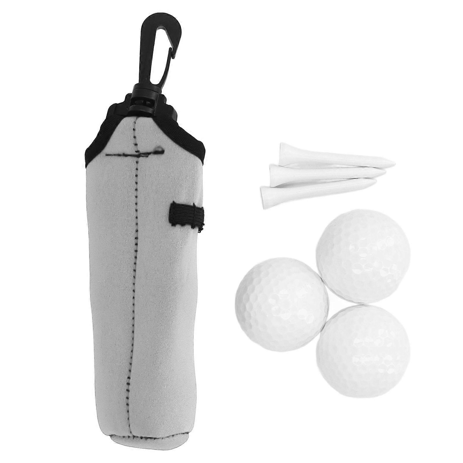 Ball Tee Holder Carry Bag Neoprene Portable Small Ball Holder Pouch with 3 Balls and 3 Tees for Men and Women Storage Gifts Gray