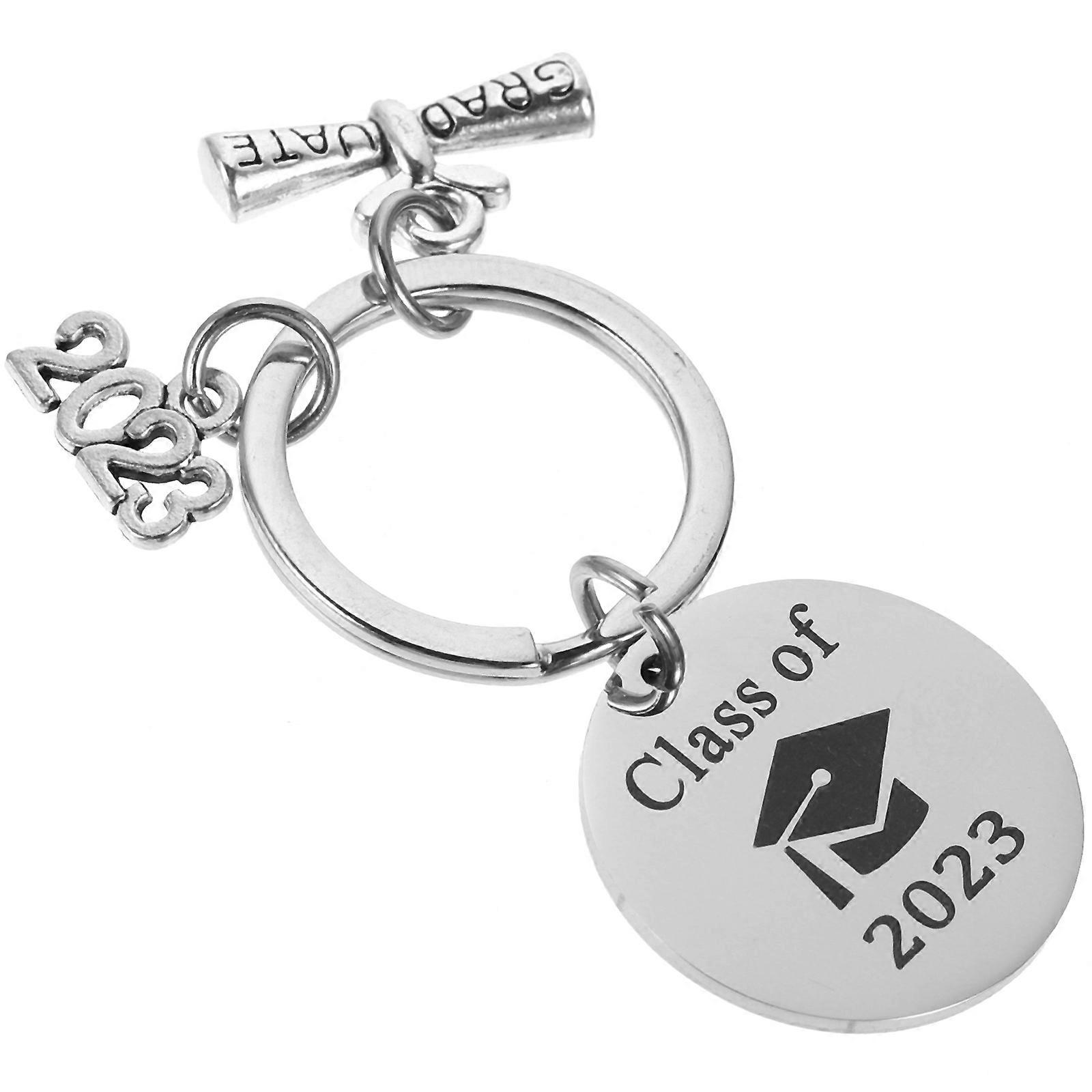 This product is a keychain with the theme of graduation, which is made of premium stainless steel, sturdy and durable, with excellent texture, and can serve you well. With creative design and practical functions, it can be effectively decorated on your bag. This is a very practical graduation keychain with a good commemorative significance. Features -Color:Silver -Material:Stainless steel -Size:5.30X2.50X0.20cm/2.08X0.98X0.08in - Graduation Themed Keychain can organize your keys or suspend it to your bag, purse, backpack, etc. - The keychain decorated with graduation theme charms is a good graduates in 2023. - Made of premium stainless steel material, the keychain is not easy to break or deform, very durable to use. - The simple ring structure design makes it easy to be attached to your keys, purses, backpack, and other places you want. - Unique design, meaningful Graduation elements, creativity, full of graduation themed design. Package list: 1 × Keychain