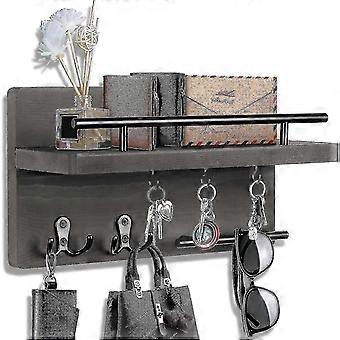 Key Holder For Wall Decorative With 5 Key Hooks, Wall Mounted Key Hangers For Wall With Mail Key Rack, Wooden Mail Organizer With Shelf, Rustic Home D