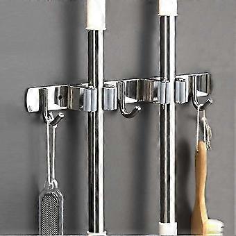حامل مكنسة الجدار ، حامل مكنسة حامل الجهاز حامل الجدار ممسحة حامل مكنسة الفولاذ المقاوم للصدأ مع 3 خطافات و 2 مشابك سريعة التحرير للمنزل والمطبخ
