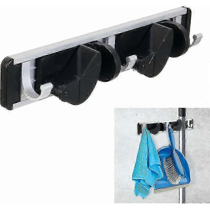 Multifunction Wall Broom Holder - Wall Broom Hanger - Aluminum and Plastic Wall Broom Holder, 2 Hooks, 3 Coat Hooks - Garage Organization - Kitchen St