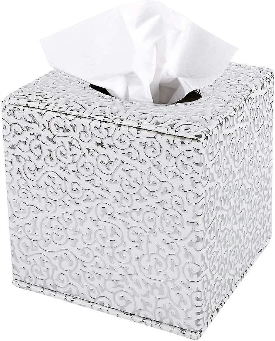 Engraved Tissue Holder Leather Cube Tissue Holder For Home Office And Car (silver) (q) a