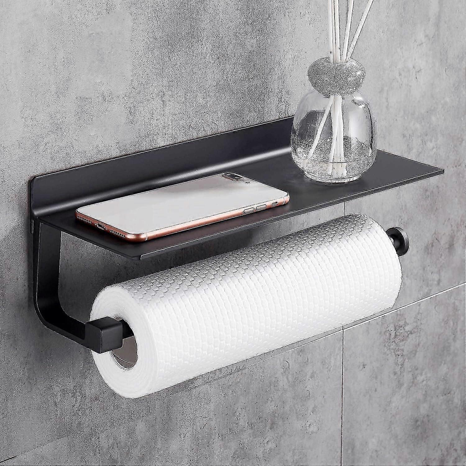 Wall-Mounted Paper Towel Holder Paper Towel Dispenser 33cm, Metal, Black Kitchen Paper Holder